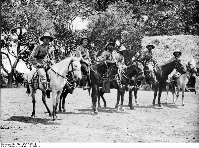 German colonial volunteer mounted patrol, 1914. Image via Bundesarchiv, Bild 105-DOA3114, credit Walther Dobbertin CC-BY-SA 3.0 de.