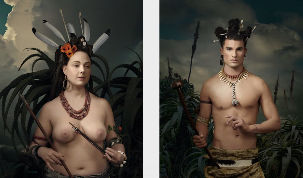 A number of the European castaways formed deep ties with their African hosts, learning Xhosa, marrying into “the tribe,” and “dying as Africans.” One woman, Bessie (that’s her in the first image in the slideshow above), “… (later) married a chief and became a great Xhosa queen.” All the characters portrayed by Putter are real, but the portrayals are fictional– based on reconstructions. Putter’s aim is to “… make use of the past to construct images of how we might live together in the future.”