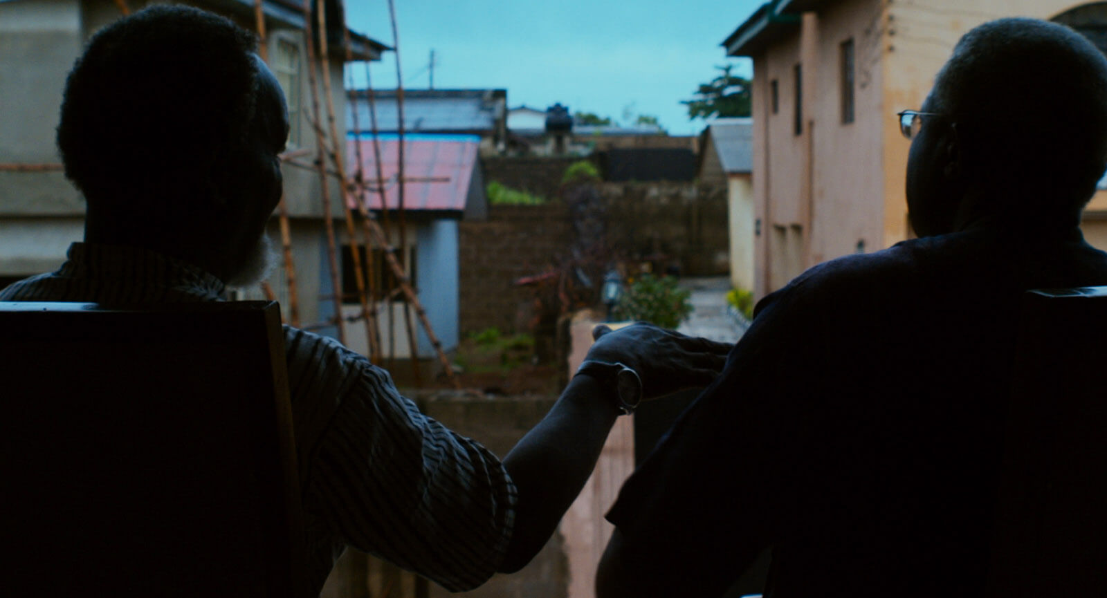 The documentary film, The Poets, ends with its two protagonists, poets Syl Cheney-Coker and Niyi Osundare, sitting on a balcony at Osundare’s home in Ibadan, Nigeria with a tumbler of whisky in their hands. They toast to literature and poetry, to their long friendship, to their dynamic past and their futures. With their backs to us, they look out ahead as the pouring rain beats down upon a half-constructed building but keep turning around to recount something or the other. This retrospective positioning—looking ahead but simultaneously gazing back—is the precise mode of this literary documentary.