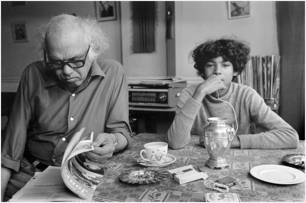 Alex La Guma and his son, Barto, in London, 1972. (Image: George Hallett).