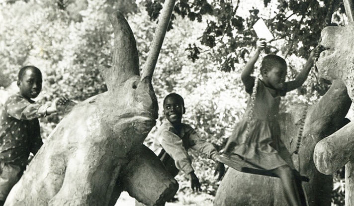 Mahlobo was one of the small subset who just wanted desperately to be an artist. He grew up in Nigel, near Johannesburg, and was a talented draftsman. Like so many other talented black South Africans his career prospects topped out at “teacher,” and he leapt at the opportunity actually to study art as part of his teaching practice. But he wasn’t really interested in teaching – Mahlobo pops up in all sorts of archives trying to drum up interest in his art. I found him writing to people in the U.S, writing to South African intellectuals like Nat Nakasa, in local newspapers. He was forever trying to relocate to Johannesburg to be closer to the art scene and to put on a solo show. But like so many others, his aspirations crashed against the hard reality that he had no materials with which to work. He frequently wrote to Peirson requesting stone or paint or wood. In the mid-1960s he finally arranged to have a solo show, staged at a gallery in Joburg, but he couldn’t get the necessary materials and the show was canceled. Shortly thereafter, he killed himself.