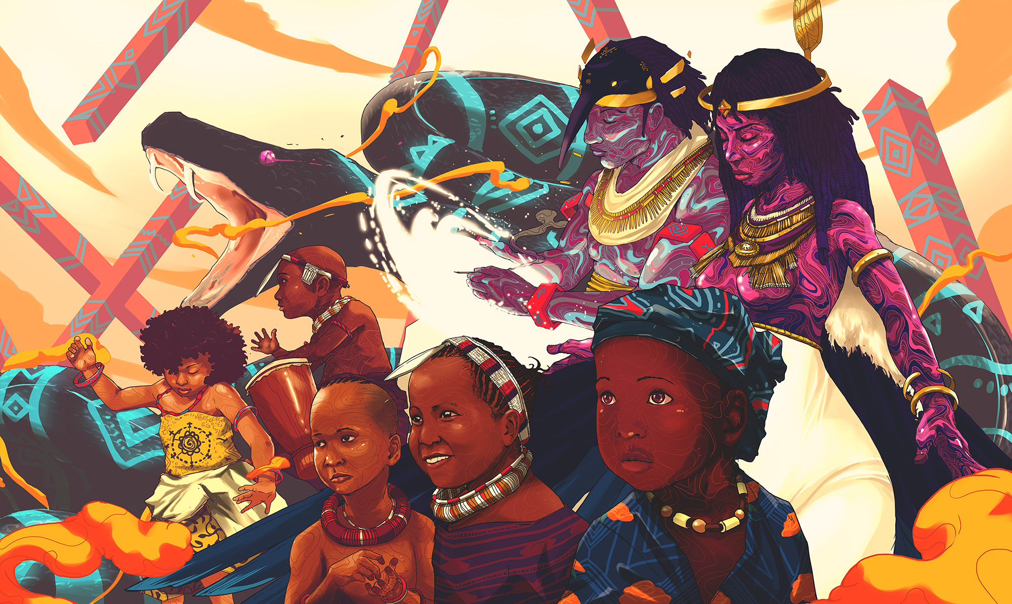 In the origin story you see where The Ma’Ati came from. There’s Keyoni, Ede, Bala Banni and Rahi – five kids. I’m actually one of five children and so the personalities of The Ma’Ati are related to those of my siblings. I was really trying to figure I who I was and where home is. I don’t really have a geographic location where I say, “that’s home.” The story was my way of trying to figure that out for myself. It started off as, ‘where should I live in the world? I’m just going to explore the world until I find out where home was.’ Then it became, ‘but who am I?’