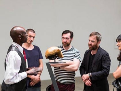 Bwanga „Benny Blow“ Kapumpa, Doctor Bwanga in Berlin, 2025, installation view, 13th Berlin Biennale, KW Institute for Contemporary Art, 2025. © Bwanga „Benny Blow“ Kapumpa; image: Eike Walkenhorst.