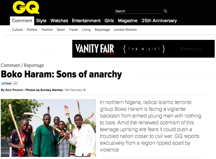 And really if you think of it, what is a Borno war to someone with an iPad in Lagos? What is thousands of villagers caught in crossfire between Boko Haram and heavy handed JTF soldiers to a young guy working for a nice international organization in Abuja tweeting from a Samsung Galaxy S4 in one hand and holding a DSTV remote control in the other? Why does Preston think it is ok to shove in our faces the thousands of people that die in Nigeria’s tucked-away northeast war and ruin our exquisite middle-class dinners? So what if most of the body count goes unreported? Isn’t there transformation to report? Surely white people can utilize their impartial accuracy (upon which we heavily rely) in reporting the good stuff. Like economic growth. Like our brand new airports. Our winning the African Cup of Nations. Dangote’s Forbes listing. And his sexy yacht Mariya. Surely.