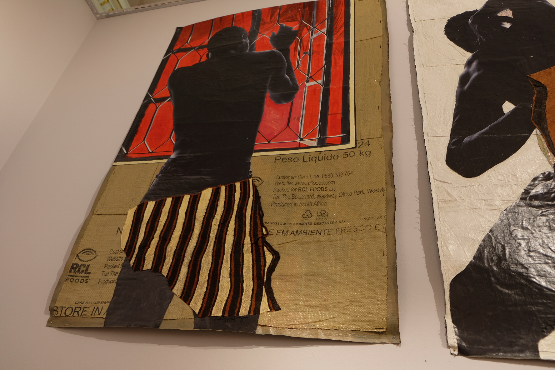 In the Côte d’Ivoire pavilion, an installation with dramatic lighting and an architectural focal point is used to feature an Italian artist, Aron Demetz, somewhat obscuring the intricate work of Saint-Etienne Yeanzy. Still, a good pairing in the pavilion is Demetz’s homoerotic nude male sculptural pair alongside veteran Ivoirian artist Frédéric Bruly Bouabre’s large drawing of a figure with an impossibly long phallus.