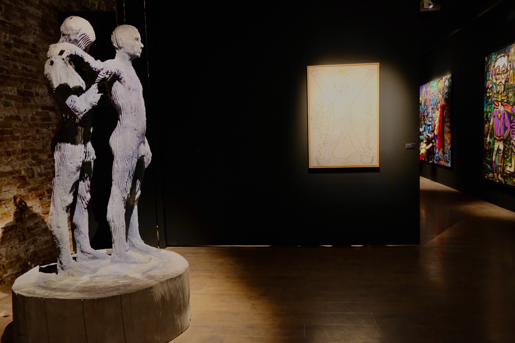 Côte d'Ivoire pavilion installation with Aron Demetz, Frédéric Bruly Bouabre, and Yeanzi. Photo by author ©.