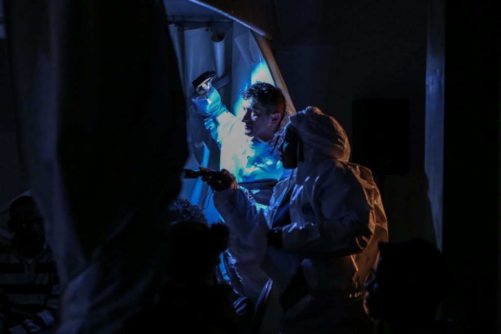 The first showing of «Converting Eviction», May 30, 2019, at The Centre for the Less Good Idea, Johannesburg. Performers: Christoph Rath, Hlengiwe Madlala. Picture: Zivanai Matangi.
