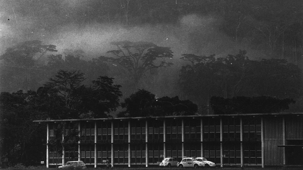 Edward Lawrenson and Killian Doherty’s short film is conceived as an archeological project, an excavation of the physical and psychic ruins of industrial mining in West Africa. Lawrenson, a Scottish filmmaker and writer, and Doherty, a Northern Irish architect, set out for Liberia after Doherty comes across photographs of Yekepa from the 1960s and 70s. Such images are not hard to find. Iron ore mining was a central pillar of Liberia’s post-World War 2 economy. Foreign mining giants like LAMCO, backed by the Liberian governments of William Tubman and then William Tolbert, rapaciously harvested the country’s reserves until the global price crashes of the 1980s. Today the detritus of company towns and massive iron ore pits litter northern and western Liberia. These ruins occupy a prominent place in the lives and memories of Liberians and non-Liberians who inhabited the mines and their supporting towns. The “pretty nice life” that iron ore mining made possible is a complicated and important thread in the story of Liberia. So, too, are the consequences of a political economy that so thoroughly shaped the “real world” of most of Liberia’s inhabitants.