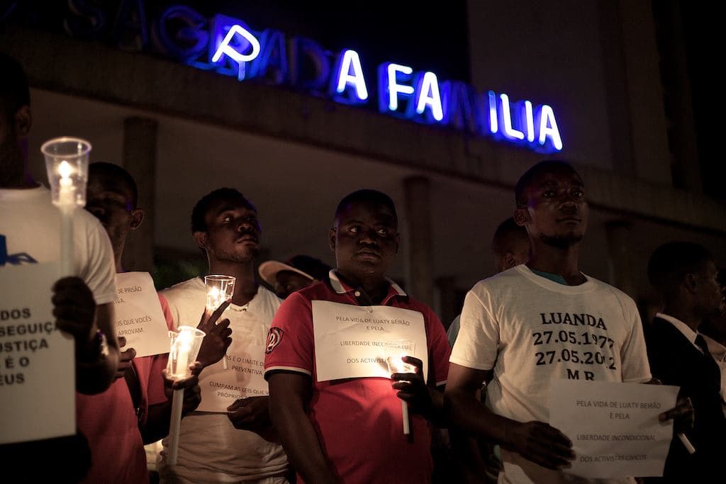A vigil in front of the Sagrada Família in Luanda for the 15+2 political prisoners. Image: Rui Sergio Afonso.