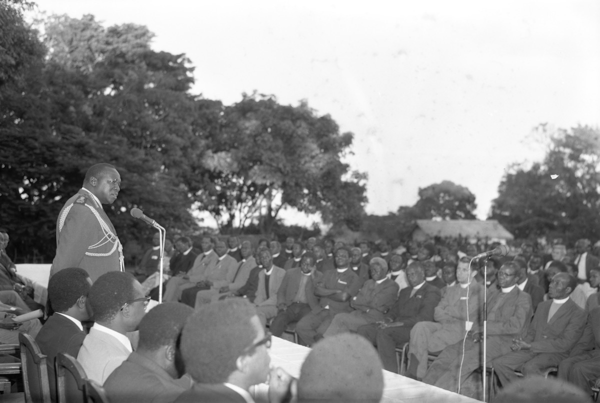 Idi Amin addressing clergy. Image from Uganda Broadcasting Corporation.