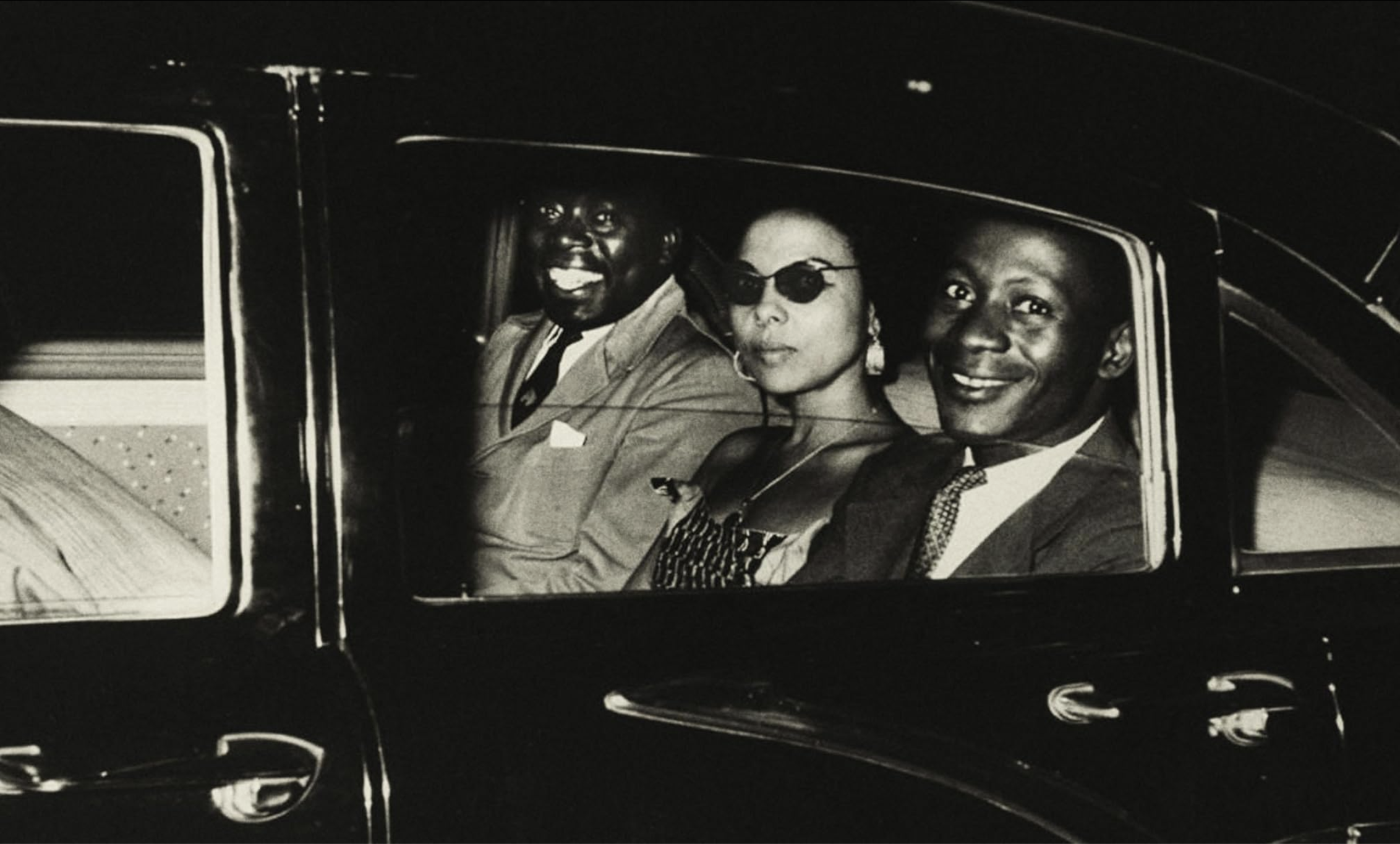 “America’s strongest weapon is a blue note in a minor key” punctuates Soundtrack to a Coup d’Etat’s thumping opening sequence. A moment later, American radio phones are dropped from the sky, appearing as bombs, and teleported into African households. Louis “Satchmo” Armstrong, armed with his golden trumpet, tours a variety of newly-liberated African countries to swathes of adoring fans; another searing title card appears on-screen: “Today he’s got a saxophone, tomorrow he’s a spy.”