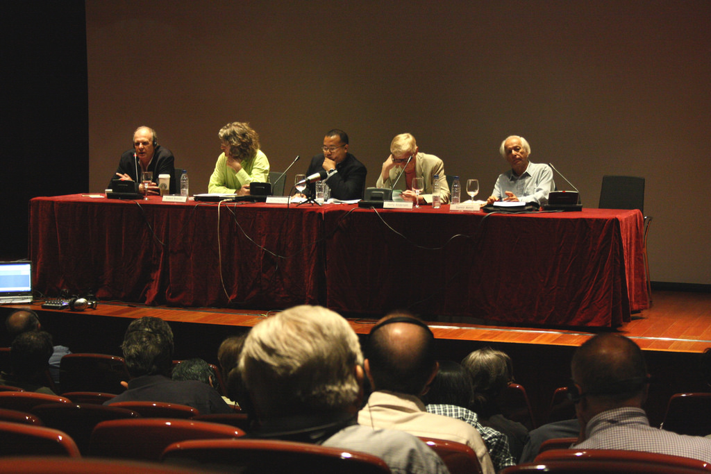 Samir Amin (right) on a panel with Robert Brenner (UCLA), Carlos Prieto (Universidad Nómada), Ho-Fung Hung (Indiana University Bloomington) and Perry Anderson (UCLA) in Madrid, Spain in 2009. Image credit Museo Reina Sofia via Flickr (CC).