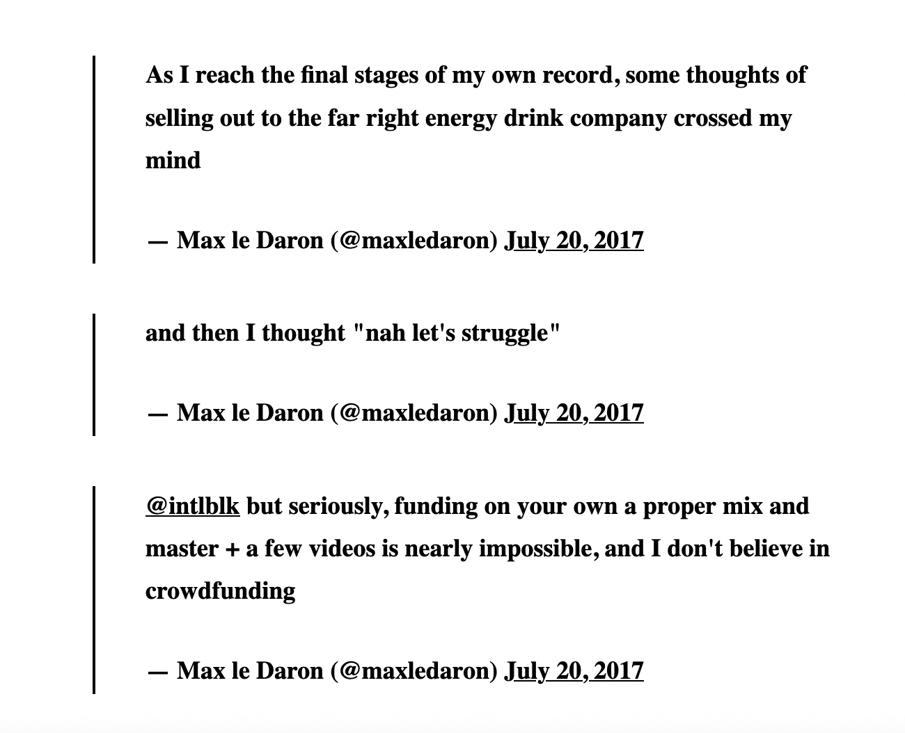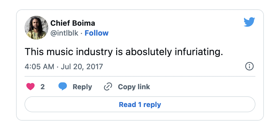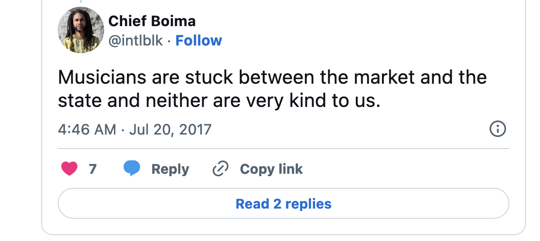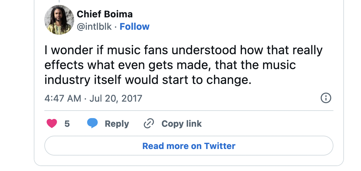 And what Max is pointing to is an unfortunate reality of the contemporary creative world. We are dependent on the rightwing-owned sugary drinks and jeans and sunglasses companies to allow our creations to be heard. Our value as creators (in the USA at least) is based on their patronage. Which is perhaps fine if you’re at the top of the food chain (capitalism is designed to have only a few people at the top). But, in reality, unless you own your own platform like Jay-Z, you really have no leverage, bargaining power or even really true creative autonomy (just ask Kanye).