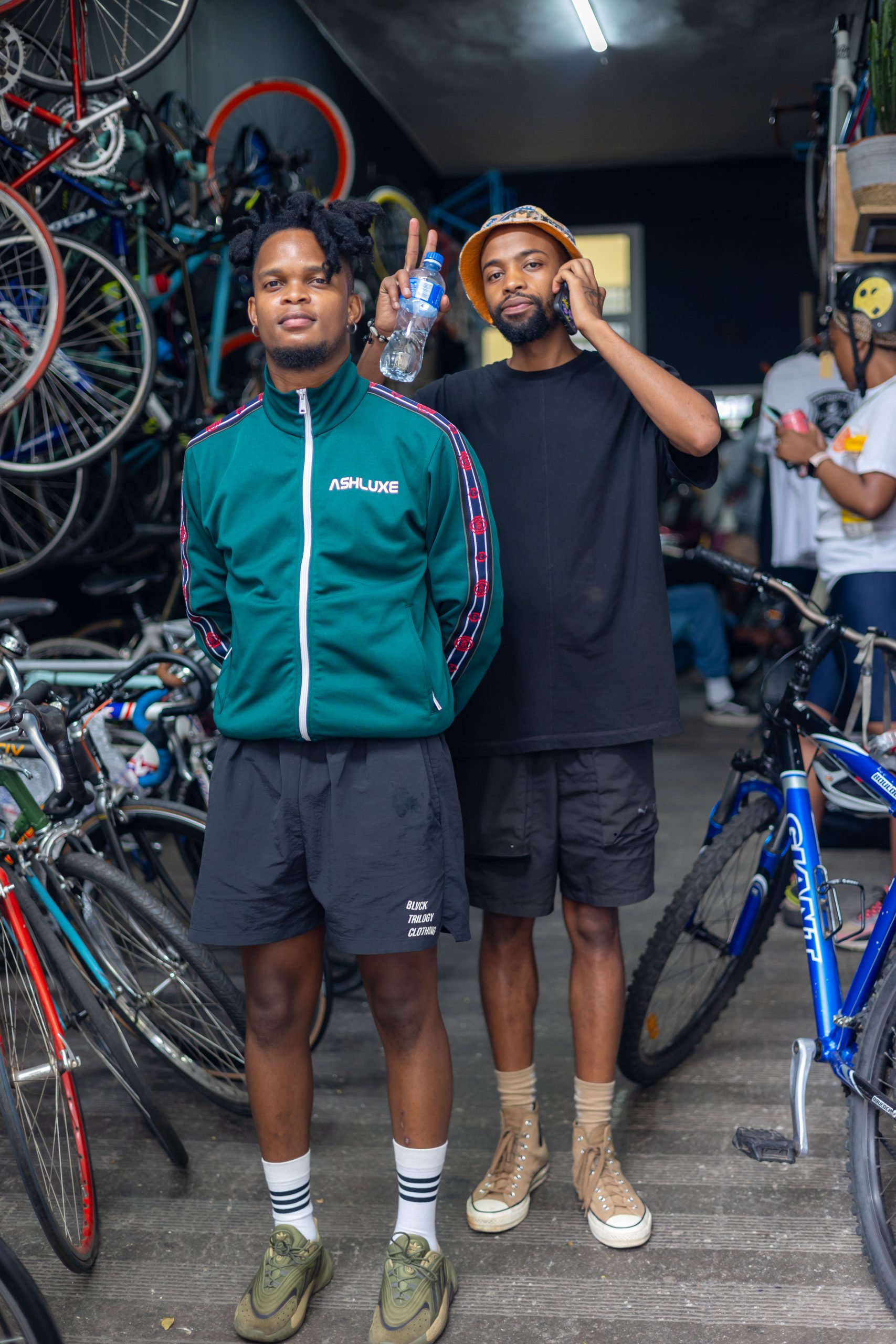Sentech Croozers are the youngest of the three, with members ranging from 12 to 19, most of whom come from Brixton and Sophiatown. They ride stretched-out bikes that they’ve built themselves and spin them in tight circles, mimicking the car spinning culture common in South African townships. Inspired by the cars used for spinning, their bikes are decked out with old license plates, fuzzy dice, and oversized speakers strapped to the back. Banditz Bicycle Club—a play on how groups of Black men are often perceived as criminals or bandits—began as friends biking around their neighborhoods in Soweto. It’s since grown into a bike shop in Johannesburg, started by Titi Mashele and Tebogo Galagala, where they now host their weekly Homies Night Ride. And then there’s Street Friends, a group that consistently draws one of the largest crowds.
