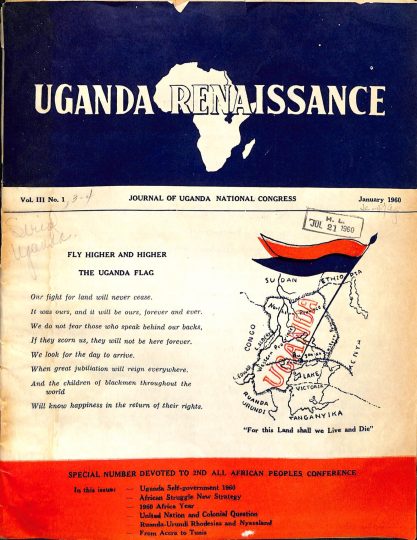 The non-canonical status of Uganda Renaissance, its confined readership, and the pivotal role of an individual editor do not indicate that this periodical was aloof from the broader anti-colonial movements of the era, or that it was insignificant. Far from it. The few surviving copies show the breadth of publications that were sustainable because of and in spite of Nasser’s top-down (often prescriptive) anti-colonial patronage. In the end, the magazine outlived the man. When Kale was tragically killed in an air accident in August 1960, two Ugandan students pledged to “finish the battle he left unfinished,” reproducing Kale’s regular features and iconic cover design. But they only managed to keep it afloat for a few issues.