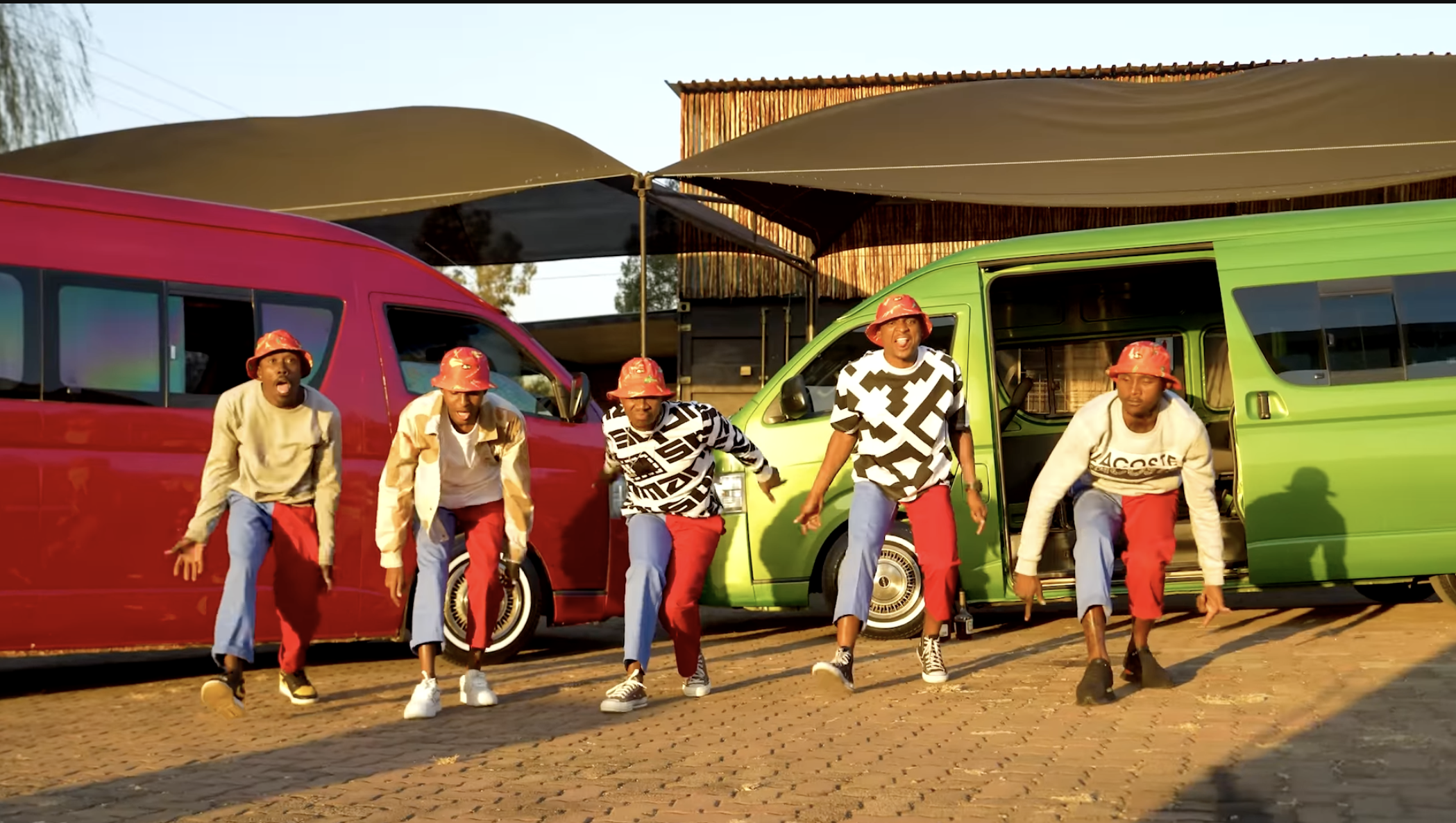 “Yebo Lapho (Gogo)” intricately weaves a visual tapestry of South African musical culture. Using clothing as an aesthetic device, the video reveals inspired styling that seamlessly transports us through history. In a dynamic interplay of past and present, loose-fitting shirts and pants adorned with vibrant colors and patterns emerge from the bustling energy of a taxi rank—a thread intertwining a unique experience of Black life with the bold streetwear style of the 1980s. As Scotts Maphuma waxes lyrical to entice “eye candy” with the lure of big bucks, the bold signature patterns of a Dice shirt are reimagined, reviving its legacy and restoring its timeless cool. The camera lingers on a Carvela shoe, reinforcing its cultural significance. Through the youthful movement of Izikhothane, its resonance in pop culture was renewed as a statement of identity, rebellion, and self-expression. Neatly tying up the theme, syncopated shots capture amapantsula, decked in their usual vibrant pants, Converse All-Stars, and signature bucket hats, give way to contemporary dancers who redefine cool with amapiano moves.