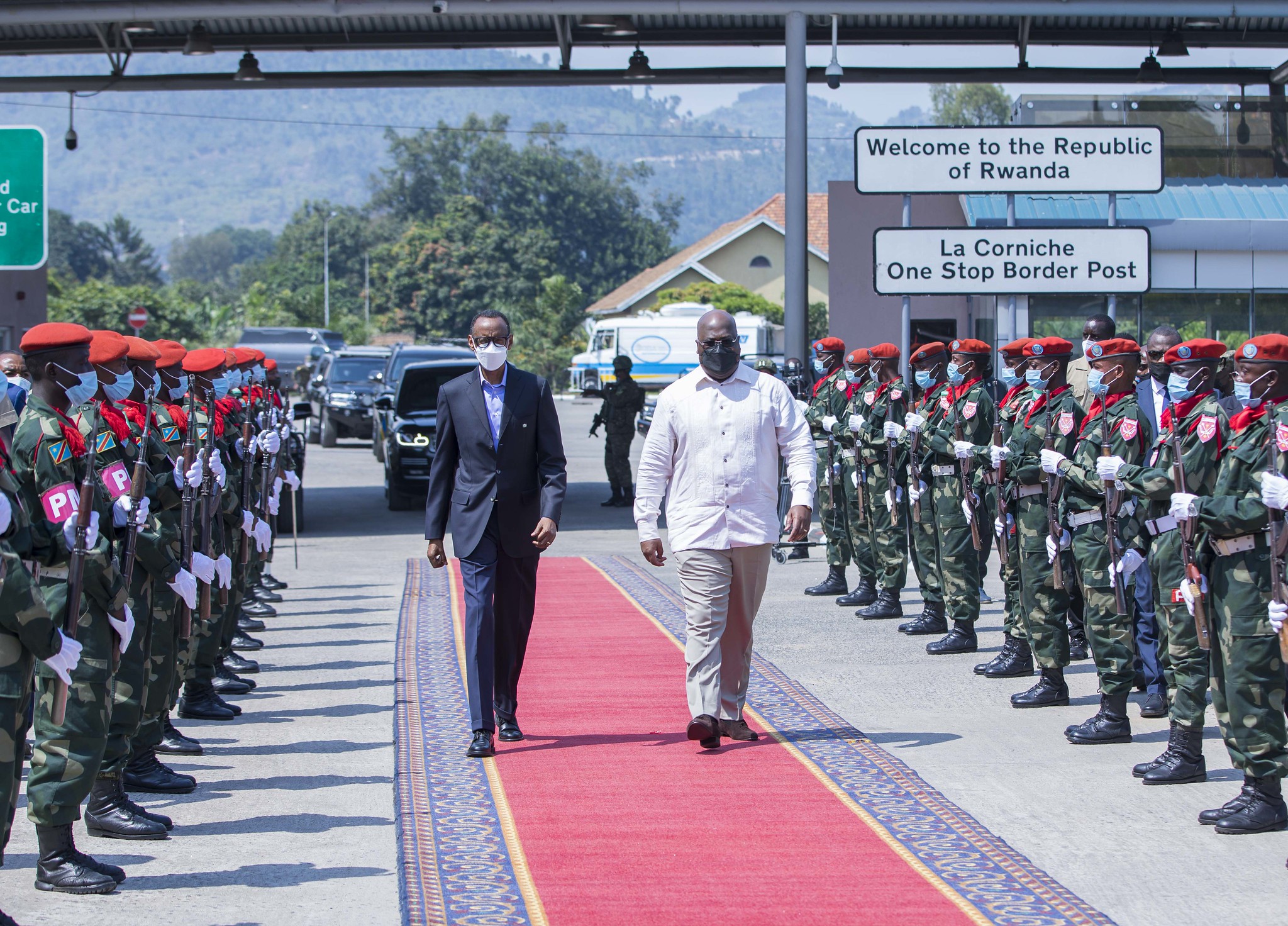 President Kagame at the border between Rwanda and DRC, 2021. Image credit Paul Kagame via Flickr CC BY-NC-ND 2.0.