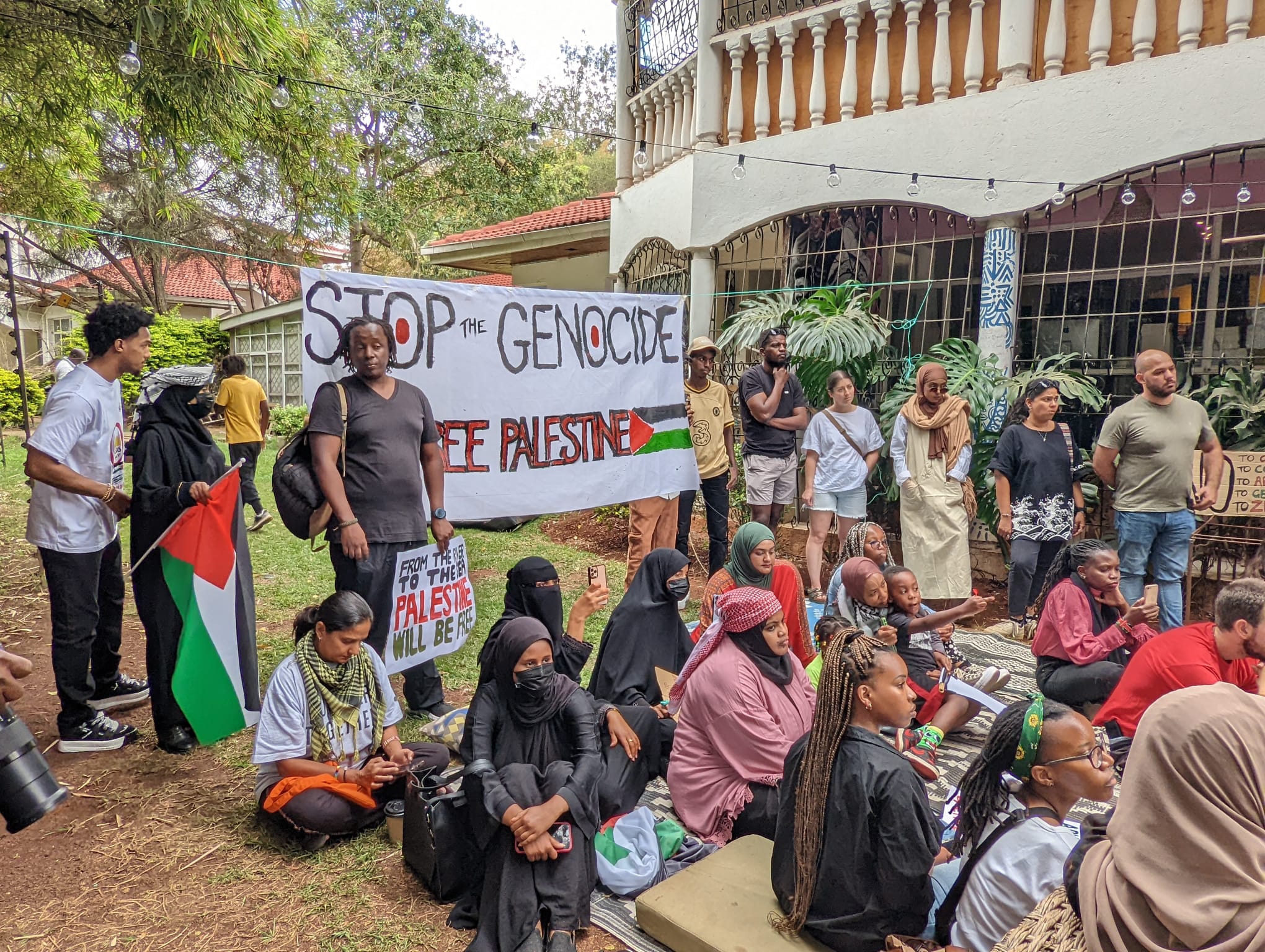 Israel has been committing genocide against the people of Occupied Palestine for 75 years and this has intensified over the last 30 days with the merciless carpet bombing of Gaza, along with raids and state-sanctioned settler violence in the West Bank. In the last month of this intensified genocide, the Kenyan government has pledged its solidarity to Israel, even as the African Union released a statement in support of Palestinian liberation. While peaceful marches have been successfully held in Kisumu and Mombasa, in Nairobi, Palestine solidarity organizers were forced to cancel a peaceful march that was to be held at the US Embassy on October 22. Police threatened that if they saw groups of more than two people outside the Embassy, they would arrest them. The march was moved to a private compound, Cheche Bookshop, where police still illegally arrested three people, one for draping the Palestinian flag around his shoulders. Signs held by children were snatched by these same officers.