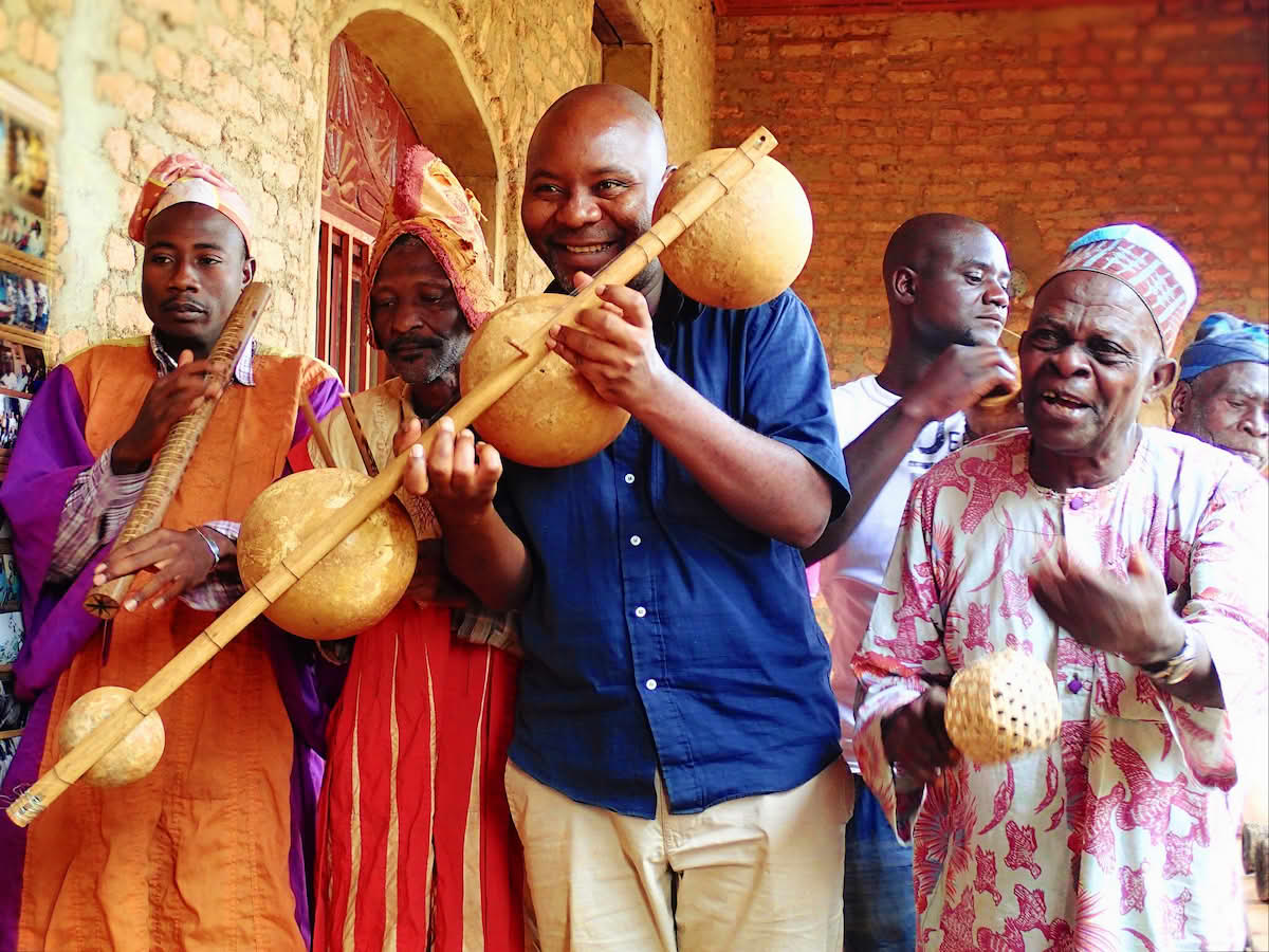 Prácticamente analfabeto y afectado por la lepra, Eyí Moan Ndong (1928-2000) aprendió a tocar el nvet, un instrumento ancestral de tubo de caña de un metro o poco más de largo, que solía llevar hasta tres calabazas como cajas de resonancia. Ingresado doce años en la leprosería de Micomeseng, sus sesiones de nvet para enfermos y cuidadores fueron célebres. Las autoridades coloniales españolas nunca lo vieron con malos ojos, pero tampoco lo tomaron en serio, pues les parecía un payaso folclórico. Tras abandonar la leprosería, el bardo recorrería pueblos actuando en funerales. Daba dignidad tenerlo como intérprete. Eyí Moan Ndong apenas chapurreaba el español. Trovaba en lengua fang, generalmente de noche, como uno más de los actos rituales en la casa de la palabra, donde los fang –la etnia mayoritaria en Guinea Ecuatorial– comían, descansaban, jugaban al akong (un juego de mesa), hacían cestería con melongo, debatían cuestiones que afectaran a la comunidad y escuchaban a sus bardos. Eyí Moan Ndong se llamaba a sí mismo “el animador de pueblos”.